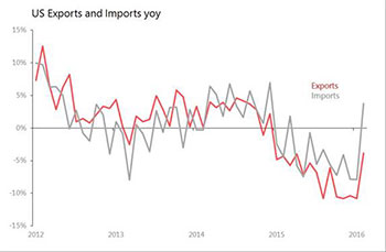![]() Opportunities and threats This week’s key surprises and shocks are already identifying the way currency movements are reversing the winners and losers in the world economy: the key surprise of the week was the strength of US trade numbers; the key shock was the sudden erosion of Germany’s factory orders.There’s a logic at work here. Under the strong dollar regime which erupted in mid-2014 and lasted until near the end of last year, the clear losers were China and those emerging economies who had either linked their currencies to the dollar, or, alternatively, relied on commodities exports to underpin their national finances. The winners, meanwhile, were the two big non-US industrial economies of Japan and the Eurozone, which enjoyed both the competitive advantage of depreciated currencies and the fall in the price of industrial commodities. Under a weakening dollar, the roles are reversed. The weaker dollar wrests comparative advantage back to the US and dollar-linked emerging markets, whilst the stabilisation or rise in commodity prices provides relief for commodity exporters. Meanwhile, Japan and the Eurozone discover themselves to be leaking competitive advantage at exactly the same time as their margins are squeezed by higher commodity prices. Three key surprises US trade values recover sharply US exports and imports have been falling sharply and virtually uninterruptedly since August 2014, hit by the strength of the dollar and the associated fall in trade prices. Between August 2014 and January 2016, seasonally adjusted exports fell 10.6 percent in dollar terms, whilst export prices fell 10.3 percent. Import prices also dropped hard, falling 15 percent between August 2014 and January 2016, but importers carved out market share, so despite the price fall, the value of imports dropped only 6.9 percent. This weakness in US trade prices and values really matters because it gets echoed around the world. In the 12 months to January the US accounted for 46 percent of G3 imports, the highest proportion for more than a decade. And it is G3 import demand which sets the tempo for Northeast Asia’s export-oriented industrial base. February’s trade data gave the strongest signal to date that this decline may finally be bottoming out. Exports rose one percent mom seasonally adjusted, which was the first monthly rise since September; before adjustments they fell 3.9 percent yoy, but with a monthly gain which was 2.2 standard deviations (SDs) better than historic seasonal trends. The 6m deviation against that trend turned positive for only the second time since October 2014. More, it was exports of goods which fared best, rising 1.6 percent mom, led by consumer goods, autos and F&B. Service exports, by contrast, dipped by 0.1 percent mom seasonally adjusted (sa). Imports, meanwhile, rose 1.3 percent mom seasonally adjusted, and, perhaps more impressive, before adjustments rose 3.7 percent yoy on the back of a monthly jump which was 2.3SDs better than trend. This was the first positive yoy comparison since March 2015. This import strength came despite a six percent mom fall in petroleum products (by volume) and a five percent mom drop in vehicles. Year on year comparisons in world trade values have been expected to stabilise from February-March this year because it’s then that the negative impact of the dollar’s rise during 2H14 and early 2015 finally begins to fall out of the data. So whilst back in December the dollar was up 5.4 percent yoy against the SDR basket of currencies, by February the gain had fallen to just 1.4 percent, and by March the dollar was actually down 0.9 percent yoy against the Special Drawing Right (SDR). We should expect the end of the dollar’s rise to feed through, eventually, into a more modest decline in dollar trade prices (for all the world’s trading nations), and consequently to improved trade values. However, the gains made in the US’s February’s trade values were stronger than expected, and arrived faster than the adjustment in export prices. In fact, during February, US export prices fell 0.4 percent mom and fell six percent yoy, showing no improvement whatsoever in trend; import prices also fell 0.3 percent mom and fell 6.1 percent yoy, and similarly, there was no improvement against trend. This, of course, underlines the potential significance of February’s strength: from here on, it will get much easier for US trade values to surprise on the upside. And in turn, that surprise factor will be repeated in Asia’s export numbers. |