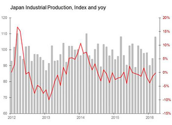 ![]() Opportunities and threats The opportunities and threats remain as before: a weakening dollar and stable-to-rising commodity prices helps the US, China and those Asian industrial economies still fundamentally linked to the dollar. Meanwhile, it puts pressure primarily on Japan and the Eurozone. This fundamental re-ordering of economic pressures has yet to really show in the economic data, but it will.Three key surprises Japan industrial production; China industrial profits; Japan construction orders Japan industrial production The shape of the surprise suggested it was driven by an upturn in capital spending: the biggest gains were made in fabricated metals +11.9 percent mom, general purpose equipment +8.2 percent and transport equipment +8.8 percent mom. That in itself is a surprise: earlier in the month, Bank of Japan’s 1Q Tankan survey found large companies expected to cut their capital expenditure by 0.9 percent this fiscal year. That’s hardly surprising: February’s industrial capacity utilisation rate fell to 94.5 percent, the lowest since December 2012, and it is unlikely that even March’s rise in output will have restored it even to the long-term average rate of 98.2 percent. There’s no sign of any uptick in machinery orders either, with core machinery orders down 9.2 percent yoy February, whilst March’s machine tool orders fell 21.2 percent yoy. Nevertheless, the domestic picture is not entirely discouraging: housing starts rose 8.4 percent yoy in March, and construction orders jumped 19.8 percent yoy. But if Japan’s capital goods industries are really to prosper, they need the support of the global economy. And here, it is just possible that March’s sectoral strength is part of a bigger picture. Globally, over the last month, the flow of economic indicators for investment spending have finally overturned the negative momentum which has persisted since the middle of December. For all that, it will take more than a single month’s data to confirm an unlikely industrial upturn in Japan. A closer look suggests scepticism is warranted: manufacturing output jumped 3.8 percent mom, but shipments rose only 1.4 percent, with the extra production resulting in a 2.8 percent mom rise in inventories. In fact, March’s output pushed Japan’s inventories to their highest level since January 2009, with a monthly jump 2 SDs above what one expects in March. This has left the inventory/shipment ratio up to the highest point since August 2015. Unless there’s a recovery in demand for Japan’s products in the coming couple of months, Japan’s manufacturers will discover a need to work down that inventory/shipment ratio quickly, either by cutting prices sharply, or slowing production. And with the yen rising against the dollar by 2.8 percent mom and 8.8 percent yoy in April, the price-cutting route to shifting the inventory build-up looks increasingly painful. |