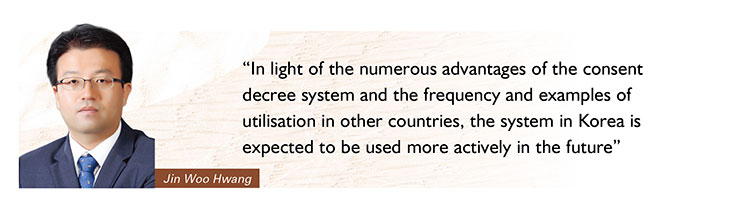 Since the 2011 introduction of the consent decree system in Korea, examples of utilisation of the consent decree system have been accumulating. Korea has experienced animated exchange of opinions regarding the operation of the consent decree system. Also, companies have begun to view the consent decree as a viable resolution for KFTC cases. In light of the numerous advantages of the consent decree system and the frequency and examples of utilisation in other countries, the consent decree system in Korea is expected to be used more actively in the future.