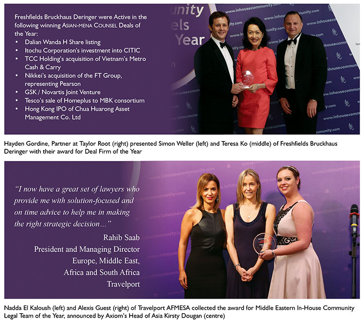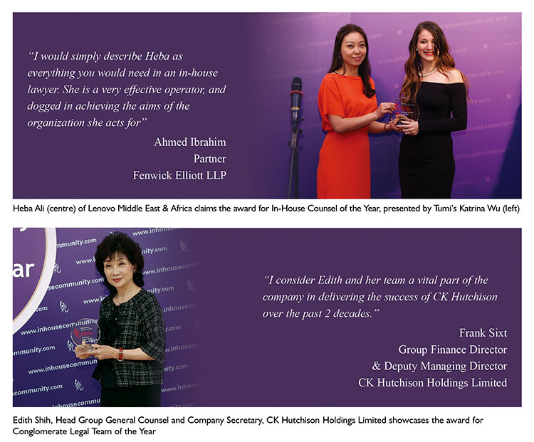 The commitment to ‘always be learning’ was exemplified by the example of our International Legal Team of the Year, Middle East, TECOM Group, with the vision statement that “something more is always possible”. Their success was echoed by CFO Michael Wunderbaldinger’s statement: “I commend the TECOM legal team for its collaborative approach, its technical expertise and its ability to remain flexible in an ever-changing corporate environment”. Thus underlining that it is the attitude of individuals within the legal team that make for lasting success.