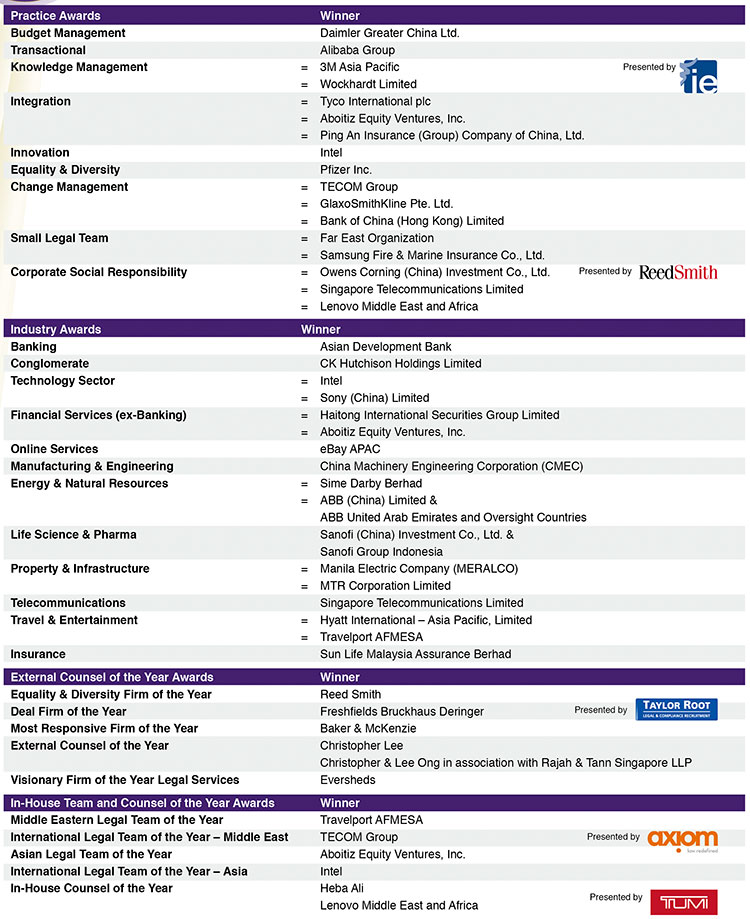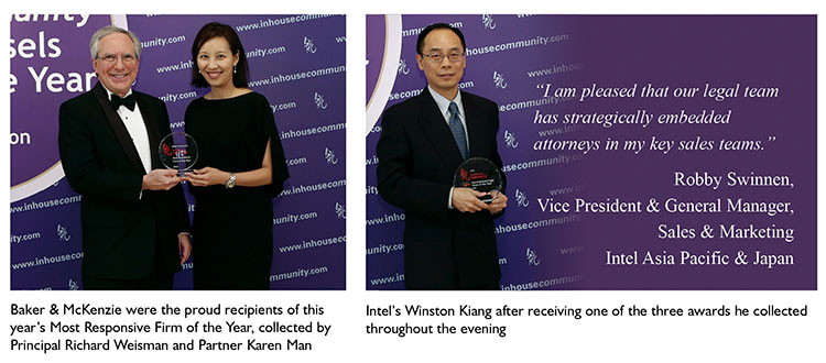 Intel won the International In-House Team of the Year, Asia category by clearly demonstrating their competence over a broad range of issues and projects, including: inter alia, software services, IP, sales, marketing, employment, anti-trust, compliance, contracting, technology licensing and mergers & acquisitions. “The legal team are our trusted advisors” shared Robby Swinnen, Vice President & General Managing, Sales & Marketing Asia Pacific and Japan at Intel. “It is heartening to know that they are passionate about what they do at Intel and for the community-at-large.”