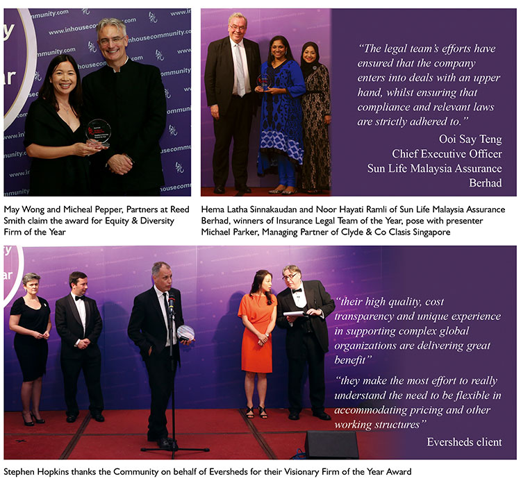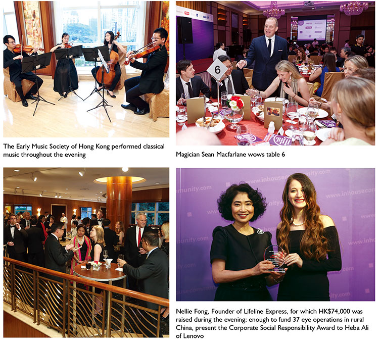 The personal commitment to charity was evidenced by the fact that our gathering raised over HK$70,000 for designated charity Lifeline Express. The same charitable impulse was demonstrated in the majority of the 54 submissions, with SingTel’s General Counsel, Shantini Sanmuganathan singled out for particular notice given her personal commitment to volunteer precious time to set up and manage free schools and hospitals for the rural communities of India.