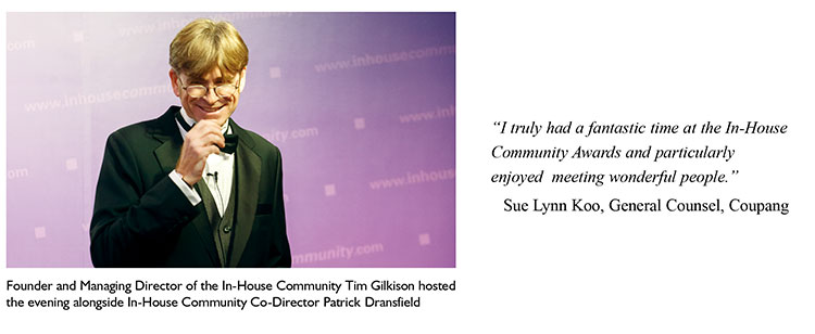 On May 26, 2016, the In-House Community hosted its inaugural regional Counsels of the Year Awards in order to celebrate outstanding work over the previous 12 months from both in-house and external counsel. The ceremony was held at the Hong Kong Jockey Club Happy Valley Clubhouse and brought together the cream of the legal industry in Asia and the Middle East to recognise their achievements in terms of dedication, innovation, efficiency and value, integration, encouragement and improvement and corporate social responsibility and diversity.